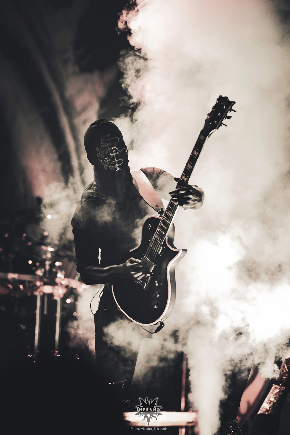 Gaerea onstage at Inferno Fest, performing on an LTD EC-1000 EverTune BB.