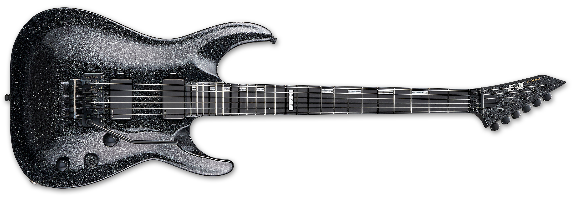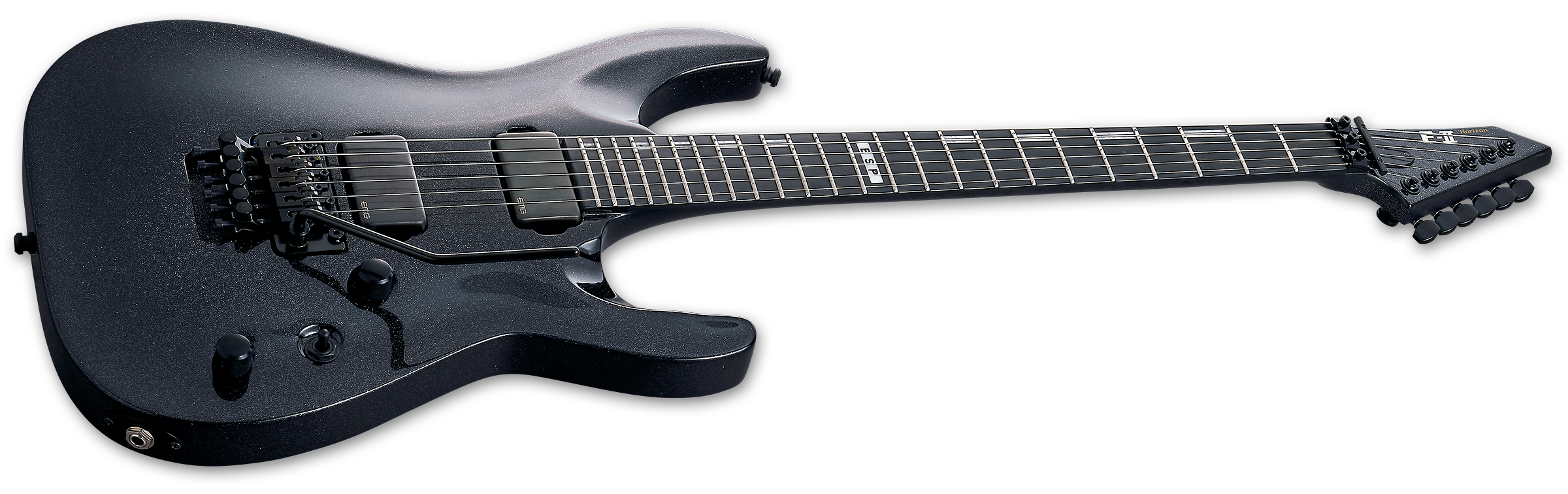 ESP E-II instruments, formerly known as “ESP Standard Series,” are made in Japan at the ESP factory by highly skilled builders. The ESP E-II Horizon FR-II in Gun Metallic Black finish looks every bit as tough and uncompromising as it sounds. This guitar is built with set-thru construction at 25.5” scale, giving you a smooth, unobstructed pathway to the highest frets. Its features include a mahogany body with maple cap, a three-piece thin U-shaped maple neck, and an ebony fingerboard with 24 extra-jumbo stainless steel frets. Components on the ESP E-II Horizon FR-II include black hardware, a Floyd Rose Original double-locking tremolo bridge, ESP strap locks, Gotoh locking tuners, and a set of outstanding and aggressive active pickups: the famous EMG 81 in the bridge, and an EMG 89R (splittable with reversed single-coil positioning) in the neck, both with brushed black chrome covers. Includes ESP form-fit case.