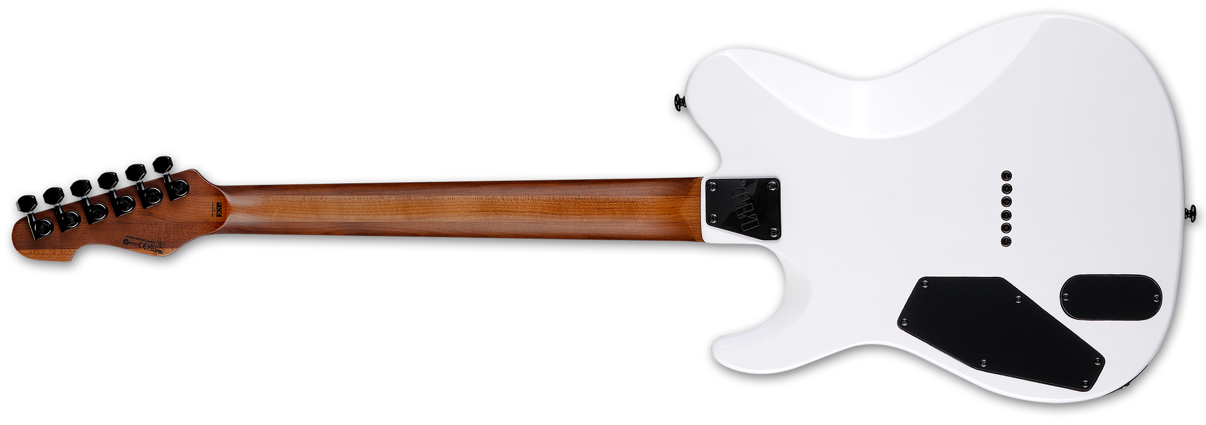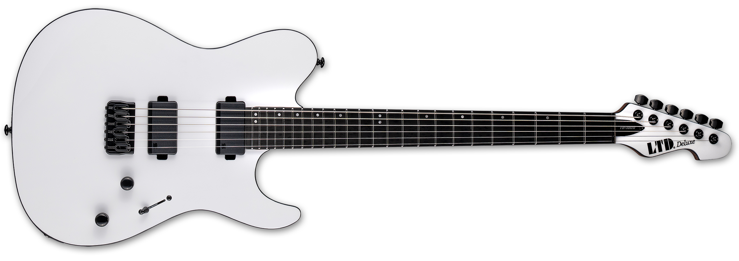 Designed for professional guitar players who require the versatile tones, smooth playability, and complete reliability for serious recording and touring needs, the LTD Deluxe TH-1000 takes a familiar shape and soups it up with the very best in contemporary components and build quality. Built with bolt-on construction at 25.5” scale, the TH-1000 is based on a swamp ash body that’s adjoined to a thin U-shaped three-piece roasted maple neck with Macassar ebony fingerboard, offset dot inlays, 24 extra-jumbo stainless steel frets, and a matching-finish headstock. Components on the TH-1000 include black hardware, a black bone nut, LTD locking tuners, a Hipshot hardtail fixed bridge with string-thru-body, and a set of direct-mounted Seymour Duncan Mortal Coil 3-Voice Active Humbucker pickups. These outstanding ESP-exclusive pickups have push-pull controls to activate their multiple voices.