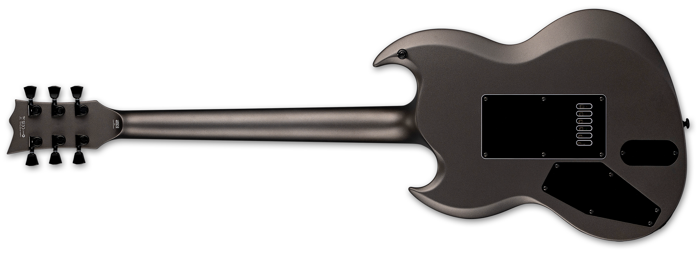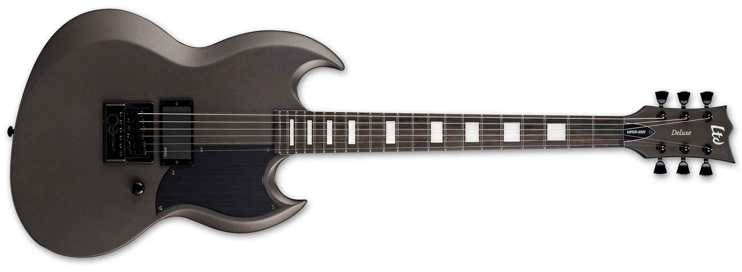 Like all guitars in the LTD Deluxe “1000” Series, the Viper-1001 EverTune is designed for professional guitar players who require the versatile tones, smooth playability, and complete reliability for serious recording and touring needs. This streamlined single-pickup guitar delivers the asymmetrical double horns of the Viper shape, and is highlighted by the EverTune constant tension bridge, keeping your guitar in perfect tune and intonation in nearly every possible circumstance. Built with set-thru construction at 24.75” scale for fast access to the highest frets, the Viper-1001 EverTune features a mahogany body with maple cap, and a three-piece mahogany neck with Macassar ebony fingerboard, block pearloid inlays, 22 extra-jumbo stainless steel frets, and a matching headstock. More components on this exceptional guitar include black hardware, LTD locking tuners, and the in-your-face aggressive tone of an EMG 81 active humbucking pickup.