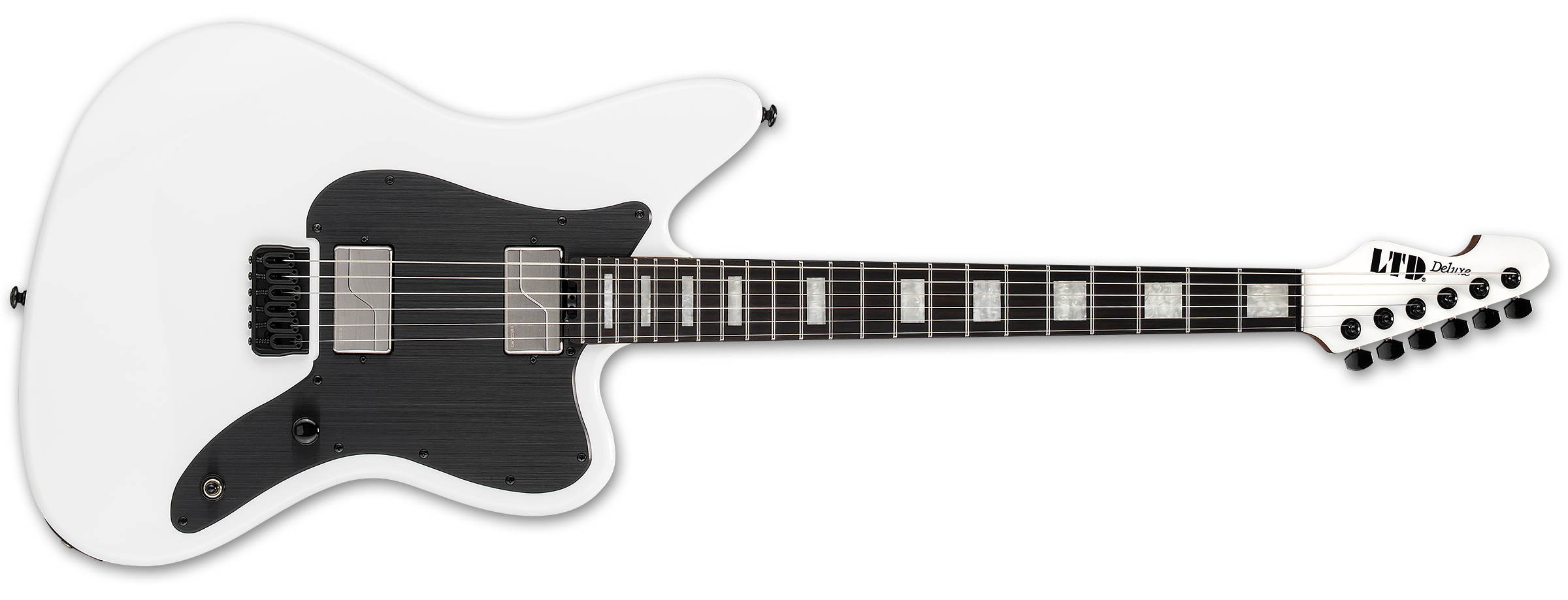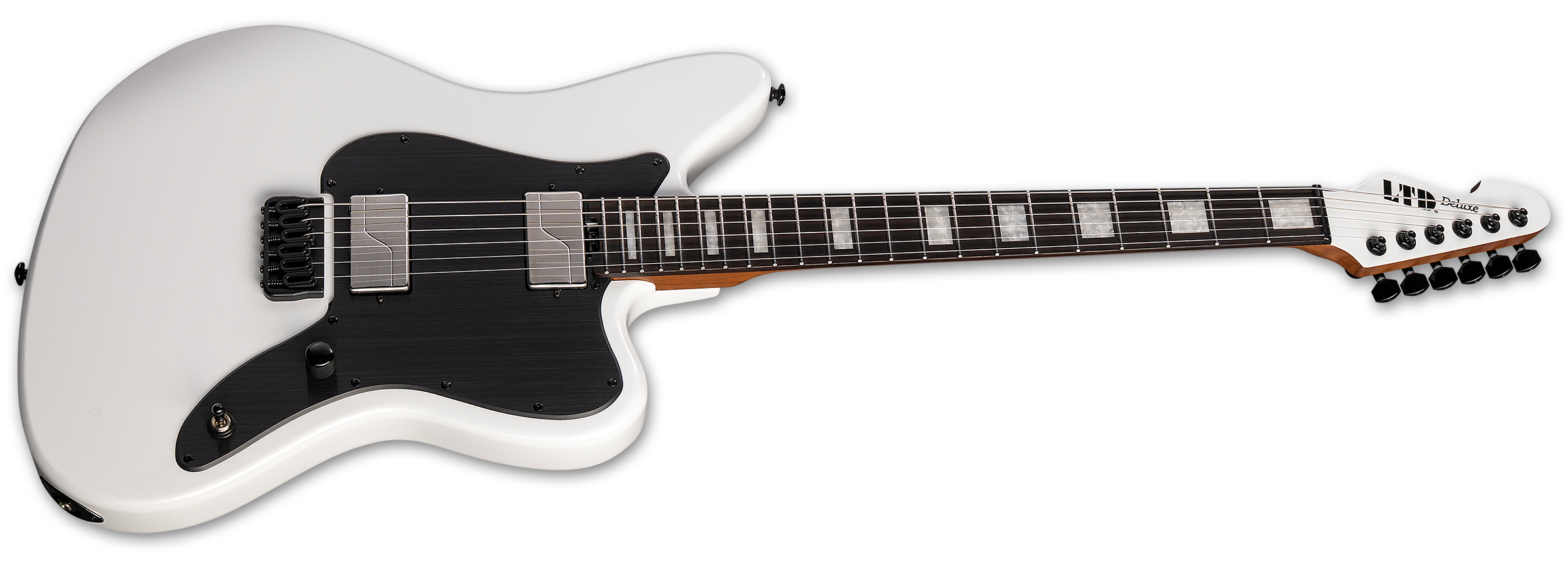 The LTD Deluxe XJ-2HT is designed for professional guitar players who require the versatile tones, smooth playability, and complete reliability for serious recording and touring needs. This guitar takes the offset, asymmetrical XJ body shape and provides it with the feature set designed for the modern musician. Built with bolt-on construction at 25.5” scale, the XJ-2HT has a resonant swamp ash body and a smooth, thin U-shaped three-piece roasted maple neck with Macassar ebony fingerboard, block pearloid inlays, 22 extra-jumbo stainless steel frets, and a matching reverse headstock. Components on the XJ-2 HT include black hardware, a black bone nut, LTD locking tuners, a Hipshot hardtail bridge with string-thru-body, and a set of direct-mounted Fishman Fluence Modern 3-Voice Humbucker pickups — ceramic in the bridge, and alnico in the neck — with brushed stainless covers. Push-pull controls allow for selection of these innovative pickups’ multiple voices.